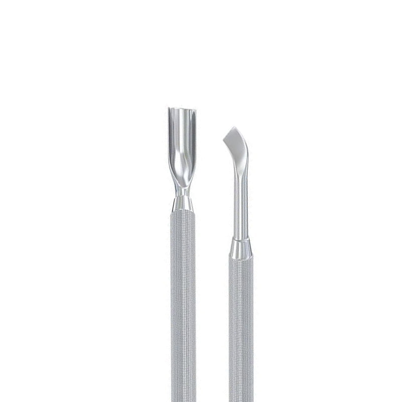 Двусторонний пушер для кутикулы с широкой рабочей стороной, предназначенной для отодвигания кутикулы и её удаления с помощью ножниц или щипцов, и заострённым краем в форме «ножа» для очистки пространства под ногтевой пластиной. Заострённая сторона идеально подходит для удаления птеригия (сухой или омертвевшей кожи), а также для обработки ногтевой пластины, боковых валиков и зоны под ногтём.