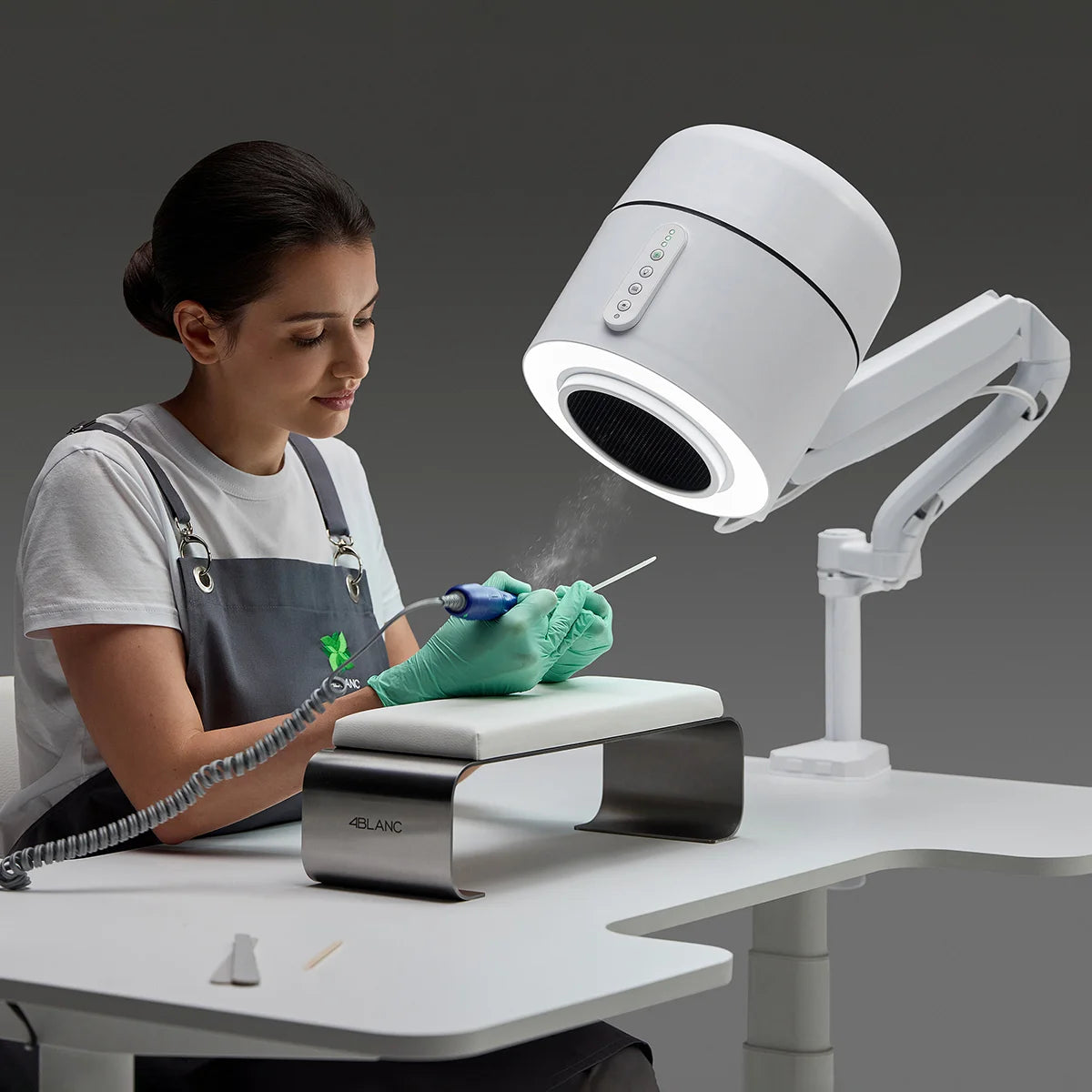 Профессиональный пылесос для маникюра и педикюра 4 Blanc Maestro с фильтром HEPA H-12 и световое кольцо Светодиодный , 168 ламп. Настраиваемая интенсивность освещения с четырьмя режимами освещения на выбор .
